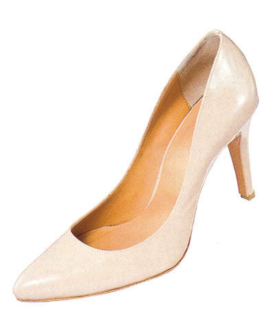 すっきり見せる甲浅のカッティングに、隠しヒー ルがスタイルアップを約束。なめらかなスムースレザーは肌なじみがよく、ヘルシーな印象も与える。