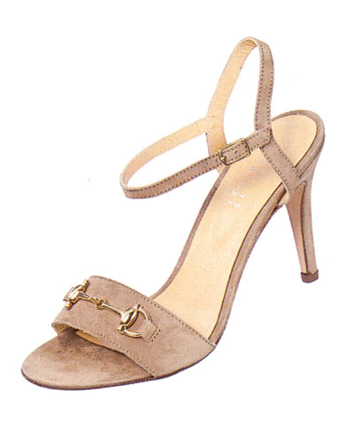 やわらかなベージュのスエードと華奢なストラップが相まって、上品で大人フェミニンなムード。