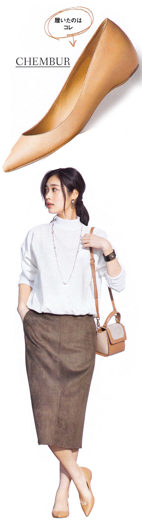 〈コーデ〉まろやか配色のワントーンで第一印象美人。「効かせる」より「なじませる」のがキャメルとのうまいつきあい方。女性らしい優しげな雰囲気が際立って、目上の方はもちろん同僚まで、全方位に好印象!