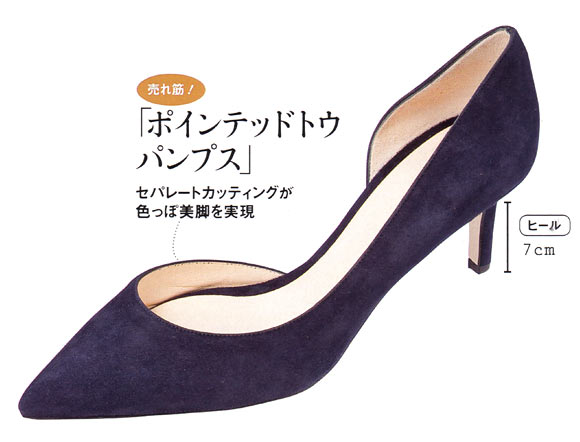 優しげな女性らしさとスッキリ見せを両立する、アーモンドトウが主流。フラットにもしっかりクッションが内蔵されている。