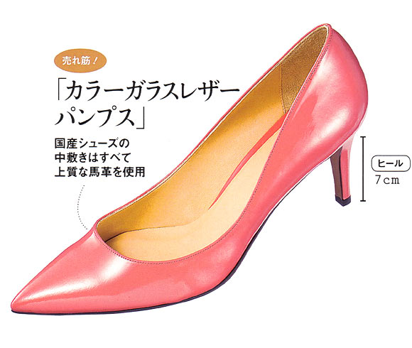 日本人に合わせた木型、クッション性に富んだインソール、日本生産にこだわったベーシックラインは、「ヒールの高さを感じさせない履き心地」と、幅広い年齢層から愛されている。