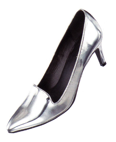 機能性シューズの研究にも余念なし。浸水防止加工を施したパンプスもメタリックカラーでスタイリッシュに。靴