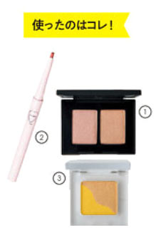 下まぶたのイエローシャドウでいつものオレンジメイクがぱっと華やぐ♪
