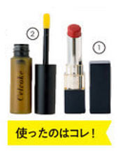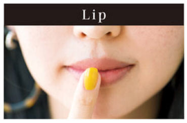 目元だけでなく口元にもイエローを使うことで、メイク全体の統一感がグ~ンとUP! 洗練された印象にまとまります。ピンクのリップにイエロ一のグロスを重ねれば、ピンクの可愛らしさが中和され、女性らしさとへルシーさが同居した上品な口元に♪