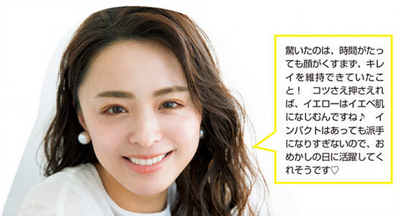 透き通るようなブルベ肌と黄み肌のイエベ肌とでは、似合うイエローの色みや使い方も異なります。私はイエベ肌なので、色白の欧米モデルに憧れても、彼女たちと同じメイクをすると浮いちゃいます。みなさんも自分の肌色に合ったイエロー使いをしてくださいね。