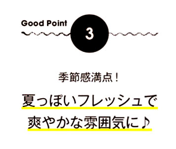 夏の陽気と元気いっぱいの子どもたちに負けないよう、イエローのカを借りて表情にもハツラツさをIN! いつものオレンジメイクをトーンアップし、下まぶたの目頭~目尻にかけてイエローからオレンジのグラデーションにすれば、若々しくヘルシーな夏顔が完成♪