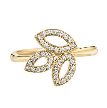 ユリの花びらをかたどったイエローゴールド台に、ダイヤモンドをセットしたリング。イエローゴールドの輝きが、指もとを華やかに演出してくれます。