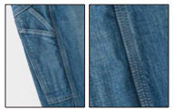 100%コットン仕様な上、サイドシームやインシームはトリプルステッチで縫われているため、とにかくタフ! 膝辺りはダブルニーで加工されており、丈夫さと穿き心地の良さを中心としたデザイン。一方でファッションアイテムとしても愛着されています。
