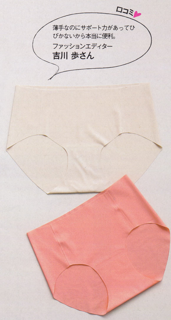 下 / 縫い目ゼロの完全無縫製ショーツロングランヒットを飛ばす、まるで素肌のような着用感もピカイチ。一度はいたらクセになる。アウターにひびきにくい切りっぱなし仕様。