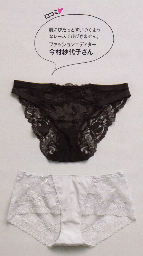 はくと肌なじみがよく、見た目も女らしい。凝ったものより、シンプルなレースデザインがスムース感よし。