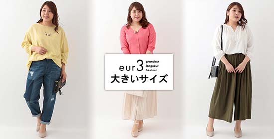 LL~4Lサイズまで、女性のラージサイズ専門のファッションブランド。今っぽい服がリーズナブルに揃う10代の学生さん向けブランドですが、最近はセレモニーセットアップや大人カジュアルな服も多く30代くらいまで年齢層は広がっています。