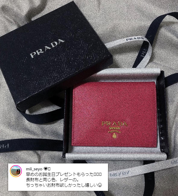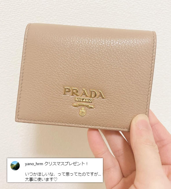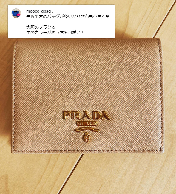 ミニバッグに入れれる小さいお財布をずっと探していたからすごく嬉しかった! 革は上質な物がいいってことでPRADAに。