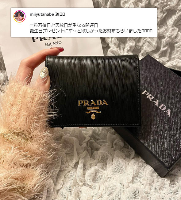 先日、主人に誕生日プレゼントでPRADAのお財布を買ってもらったよ!