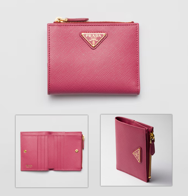 こちらはプラダの定番素材「サフィアーノレザー」+コンパクトサイズ+シンプルと、とても使いやすく、そして年齢を問わないデザイン性を持ち合わせているお財布。