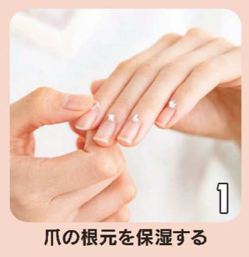 お好きなハンドクリームを使って、爪の根元を保湿しよう。クリームを爪の周り全体に塗り込み、甘皮や爪をやわらかくしておいて。