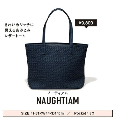 ショルダーとハンドバッグの2WAYで、中にはポーチつきで機能性抜群。トートバッグは裏面がシンプルな無地ブラウンなので品のよさもキープ。