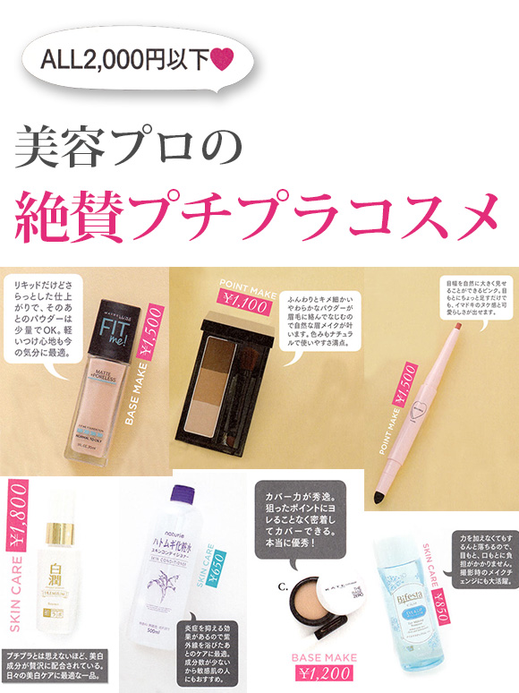 美容のプロが2000円以下のプチプラコスメで「実際に使って本当に良かった」というアイテムをまとめました。キレイも可愛いも叶えましょ♪