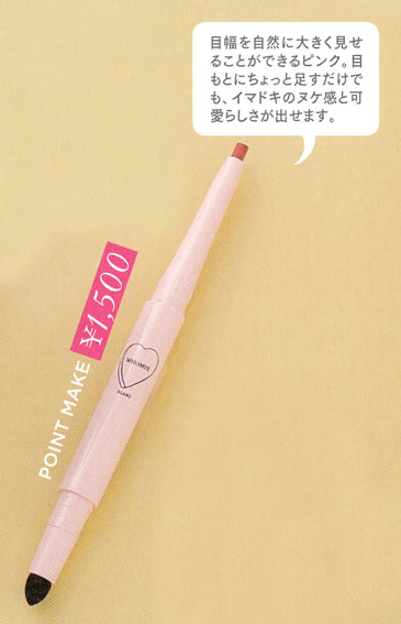 色気や女っぽさをさりげなく仕込めるピンクのアイライナー。やわらかい色だから囲み目メイクにもぴったり。乾く前にWエンドのチップでぼかせばアイシャドウとしても使えて便利。
