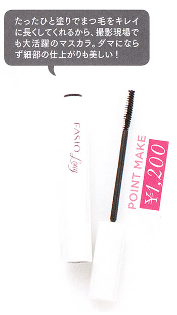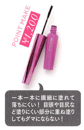 朝から夜まで上向きカールを形状記憶するマルチマスカラ。下地としても、トップコートとしても使える。