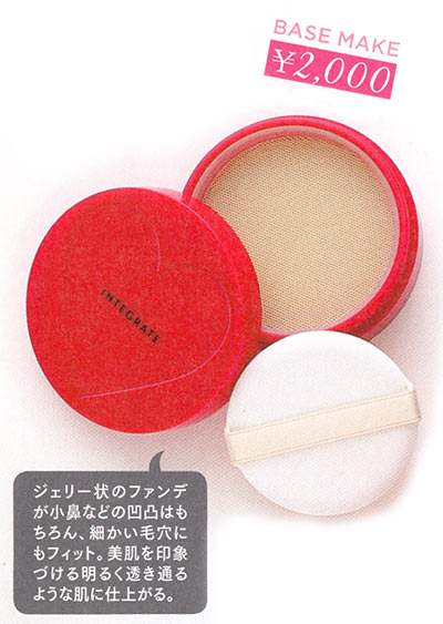 ジェリー状に固められたファンデーションを、メッシュを通してパフで崩しながら使用するユニークさが大ヒット。肌にぴったり密着して皮脂と混ざらず崩れにくい。