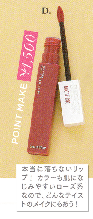 鮮やかな発色がメイクをオフする瞬間まで続く、リキッドタイプのマットリップ。ほんのりくすんだローズがおしゃれ