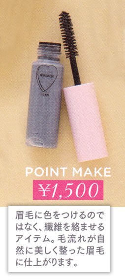 眉毛そのものの毛量が増えたようなファイバー入りの黒透明タイプ。凛とした毛流れに整えて印象的な立体眉に。まつ毛にも◎。