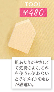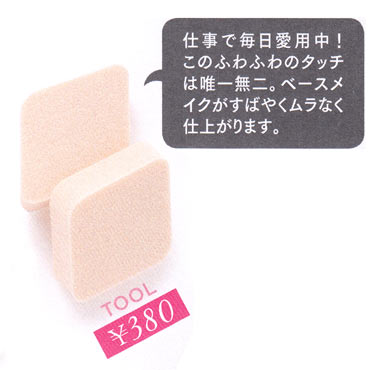 ファンデのタイプを選ばず使えるロングセラーアイテム。厚みがしっかりとあるからムラなく仕上がる。