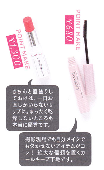 質感を絶妙に操りグッとくる女らしさを提案。数多くの女優やモデルを手掛ける“河北メイク”は読者人気も高く、数多くの雑誌でひっぱりだこ。プロデュースする「&be」も話題沸騰。