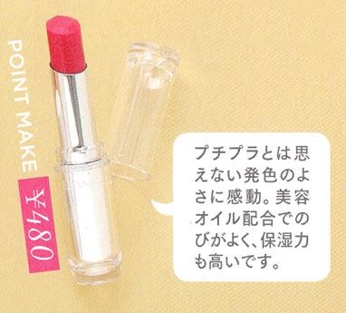美容オイル成分配合で濡れたようにうるおうツヤ唇に。クリアな発色。