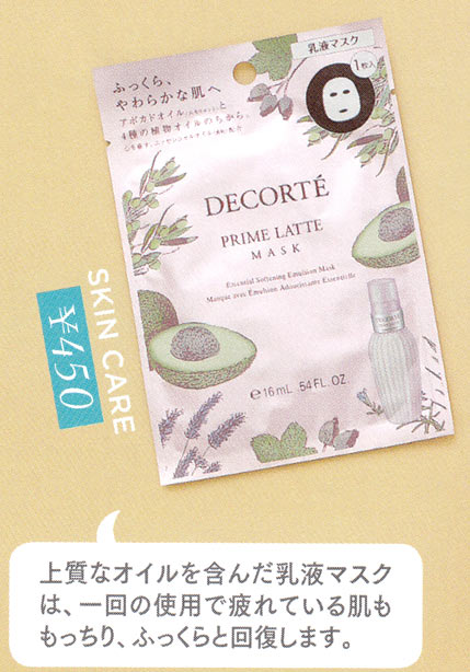 乳液マスクで肌ふっくら。憧れブランドがお得に試せるのもうれしい! 16mL×1枚