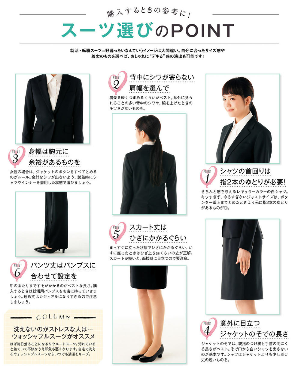 ぴったりとフィットするスマートなシルエットが特徴的で、女性のリクルートスーツも充実♪