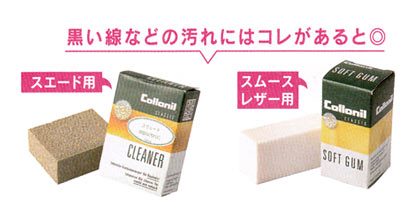 〈右〉靴表面の汚れを落とすスムースレザーシューズ用のクリーナー。