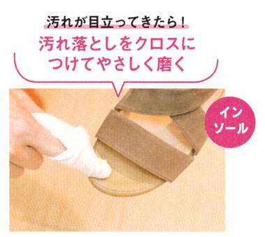 サンダルもパンプス同様それぞれの素材にあったシューケア用品でお手入れするのが一番です。ただ素足で履くことの多いサンダルは、皮脂と汚れが混ざりあうと落ちにくくなってしまいます。