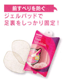 足裏をしっかり固定し、前すべりを防ぐ透明タイプのジェルパッド。クッションで足の疲れも緩和。