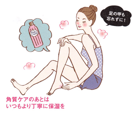 角質ケアした肌は無防備な状態なので、保湿を怠るとより硬くなってしまうもの。ボディクリームやオイルでよりしっかり保湿をしてあげて。