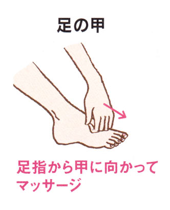 足指から指と指の間を甲に向かって、足骨の隙間を指の背でなぞるようにマッサージ。