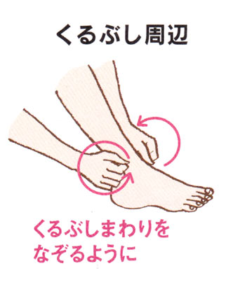 くるぶし周辺は冷え性など婦人科にかかわるツボも多数。なぞるようにほぐしてあげて。