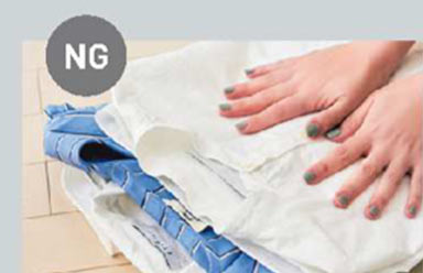 押しつぶすと、襟がつぶれ細かいシワの原因になる。
