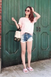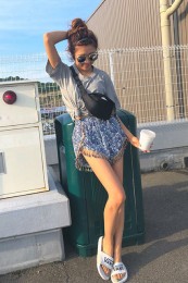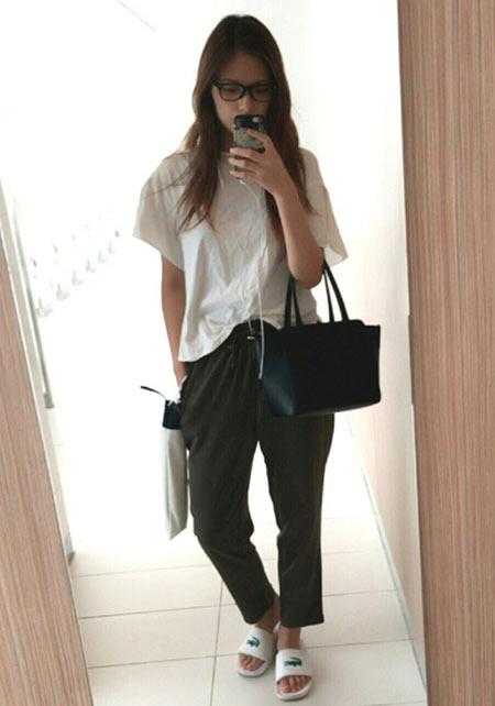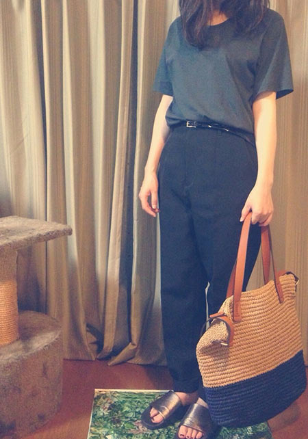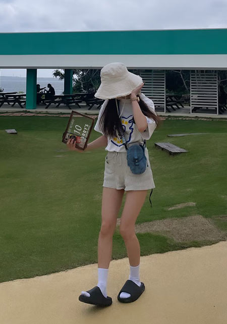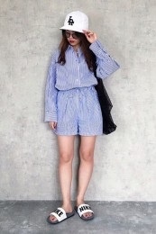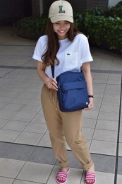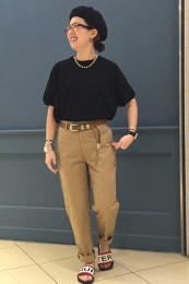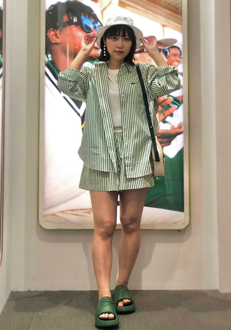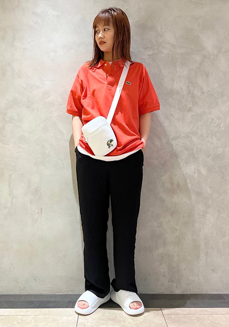 ラコステのシャワーサンダル×おしゃれな着こなし