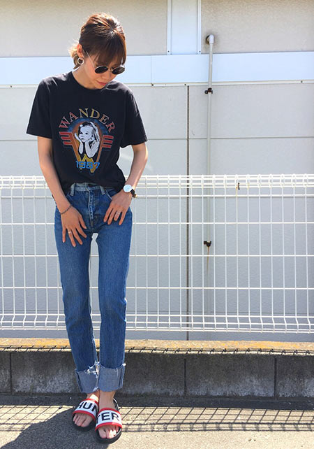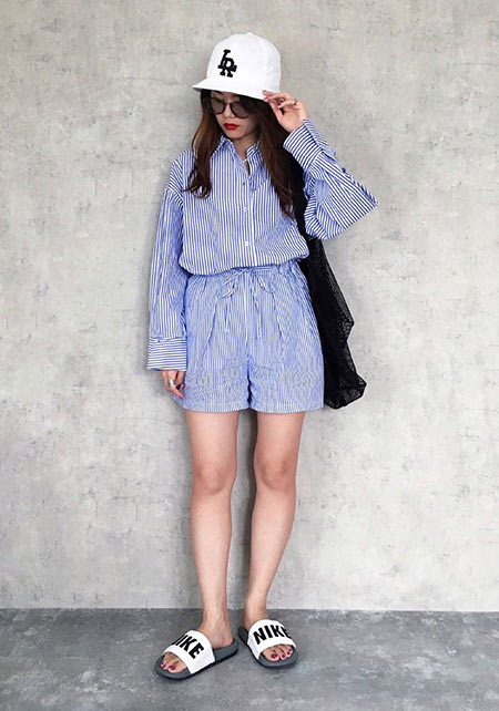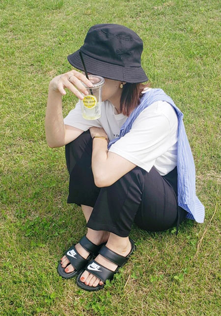 ナイキのシャワーサンダル×おしゃれな着こなし