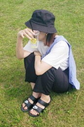 リラックス感あふれるルックスは夏コーデに抜け感を与えてくれ、今が旬な「靴下合わせ」も気軽に楽しめます。