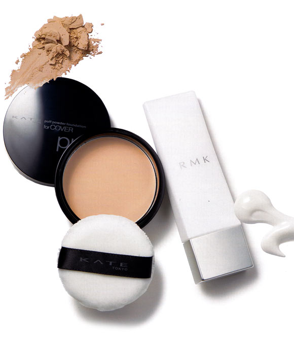 中でもおすすめは、今年多く出ているパフでつけるタイプ。スポンジでのばすよりも薄くふわっとついて、毛穴や色ムラをぼかすようにカモフラージュ。ふんわり桃肌に仕上がります。しかもパフだとムラになりにくいので朝のメイクがパッと手早く、日中のリタッチも簡単!