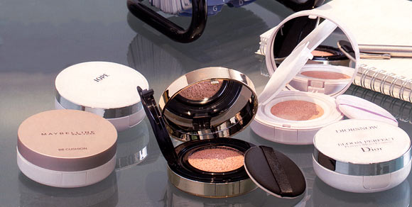 〈左〉化粧水たっぷりのBBクッション