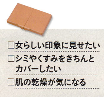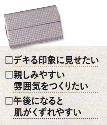 アクティブに動き、人と会うことも多い外勤女子に必要なのは、しばらく鏡を見なくても安心のくずれにくさと、知性を感じさせるセミマットな質感。そこで活躍するのはやっぱりパウダーファンデーション。