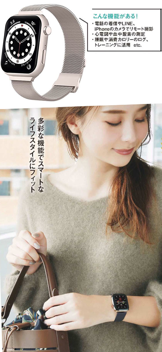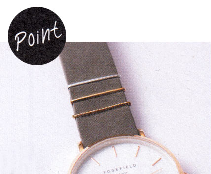 大人かっこいい雰囲気に一新できるメッシュバンド。この目の細かいメッシュバンドならカジュアルになりすぎず女性も使いやすい。