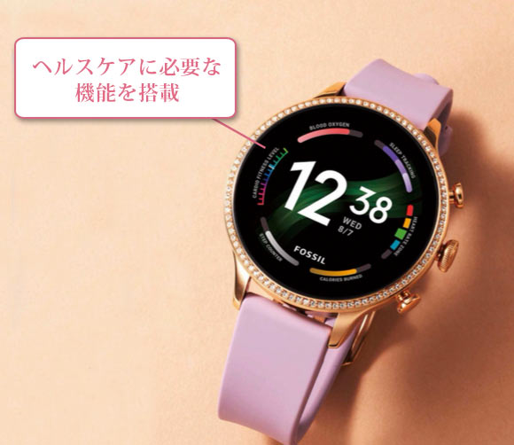 睡眠や消費カロリー、心拍数の測定などヘルスケアに必要な機能を搭載! 文字盤やストラップの種類が豊富で、カスタマイズも楽しめます。ジムなどスポーツ以外でも、デイリーユースに。