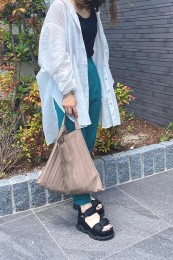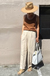 〈コーデ〉定番のベージュは、あっさりしすぎないようにディティールが聞いた小物で盛るのがおしゃれに見せるポイント。