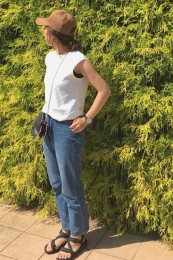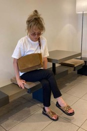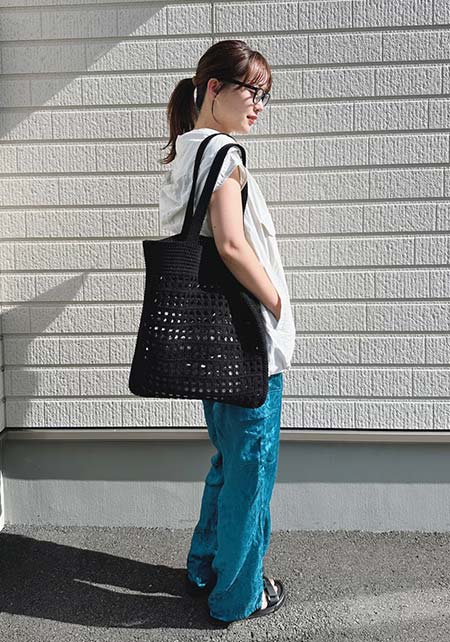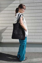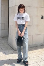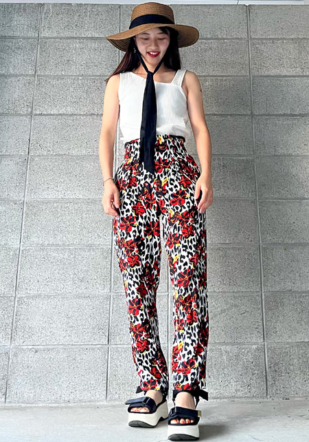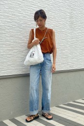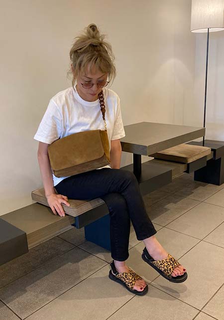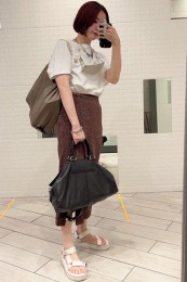 シンプルな夏のワンツーコーデに奥行きをもたらす柄モノは、ひとつあると重宝。パイソン柄なら、キリッと辛口にまとまる。