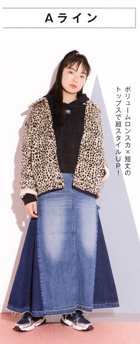 顔が小さく見えて上半身がコンパクトに見えるAライン。着やせの基本として知られる「上コンパクト×下ボリューム」のコト!