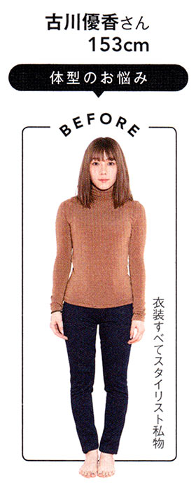 「X脚とO脚のダブルパンチで、全体に対してバランス的に脚が太いのが悩み。しかも、身長が低いのでコーデ次第で着ぶくれしがち」